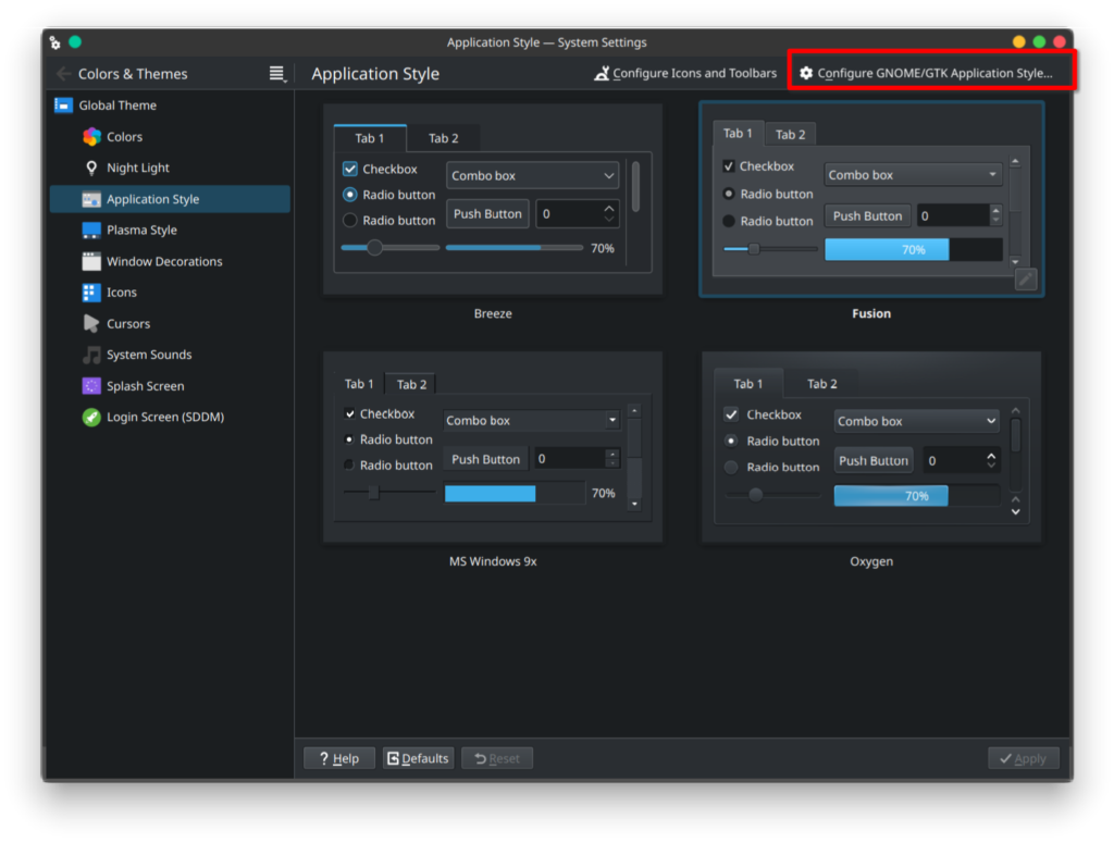in your KDE settings panel and choose “Configure GNOME/GTK Application Style” (top right)