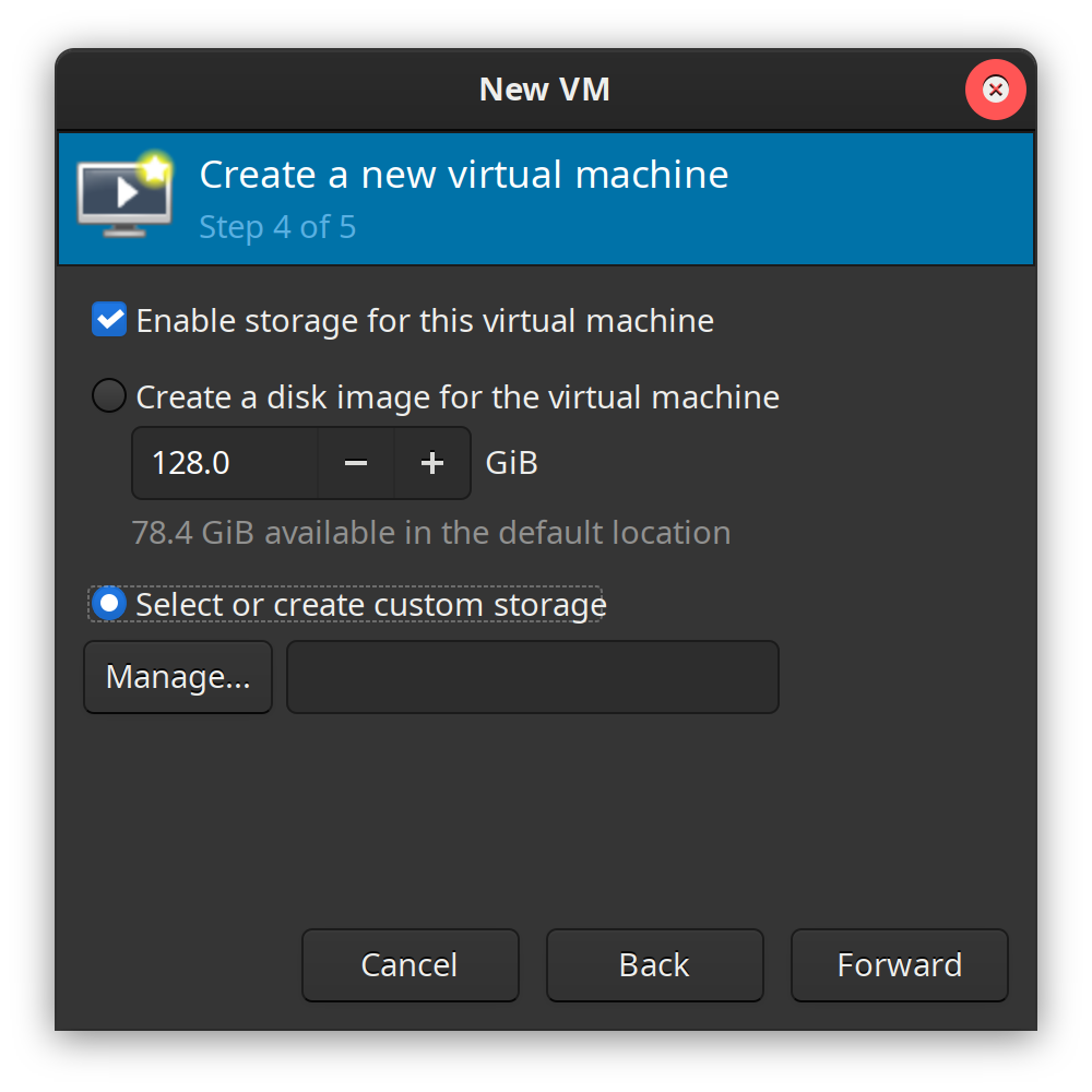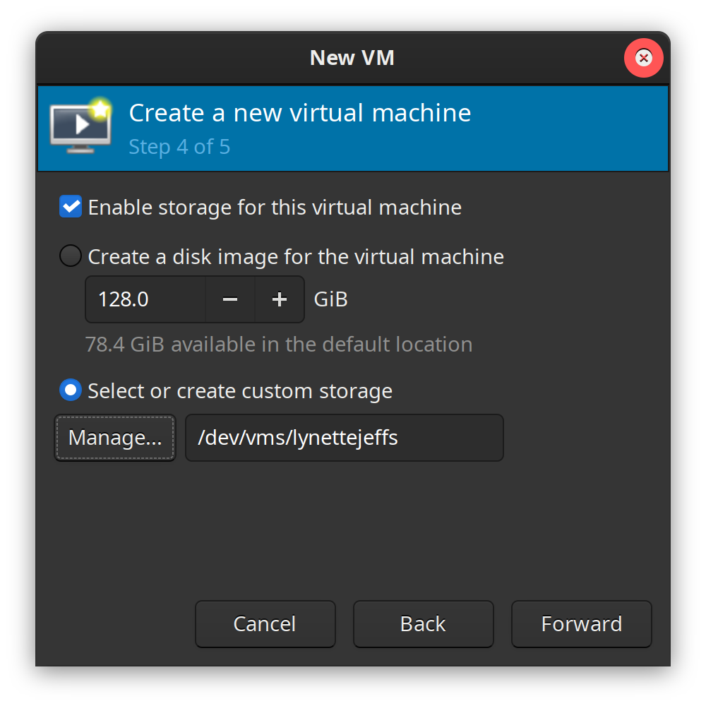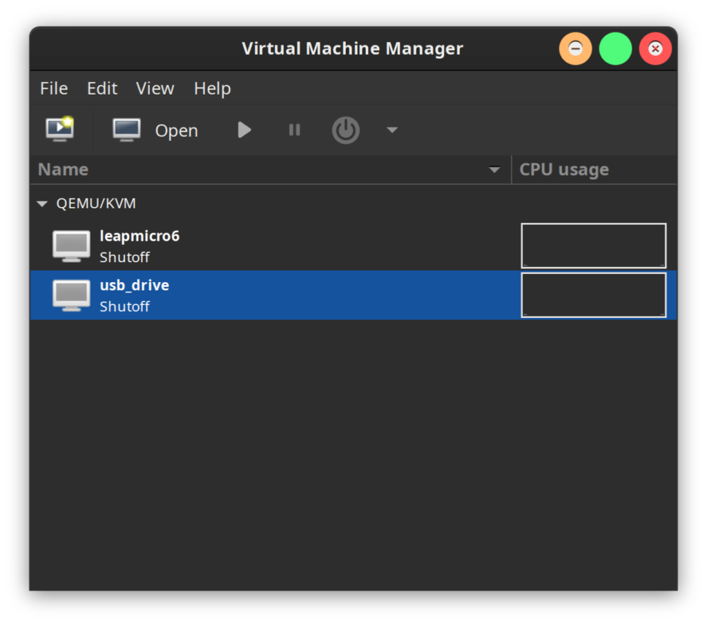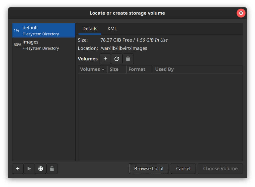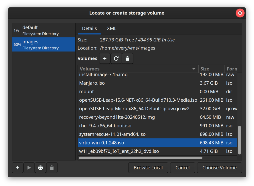 But we’ll want to use the entire multi-partition volume for our new VM. To use it start up virt-manager: