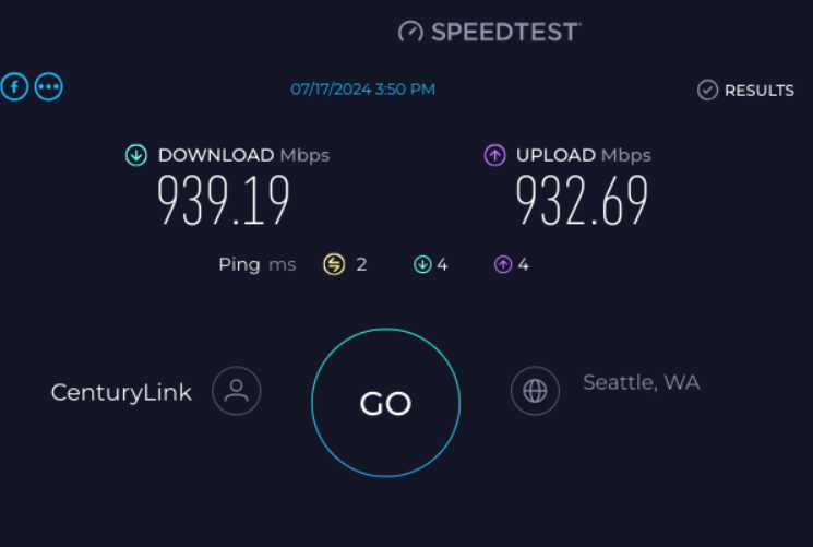 So, I wasn’t so sure how soon I should write about this, but I have a fiber connection here in Seattle I’m pretty excited about. For the past decade I’d been living in Olympia, WA, where Comcast is the only game in town, and upload speeds are hampered by only having 4 channels across cable (~40Mbps top-out), even for “up to 1200Mbps” service. For anyone who wants to do anything “fun” with their internet, poor upload speeds can be a real hurdle to get over.